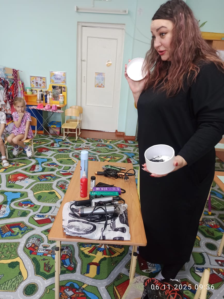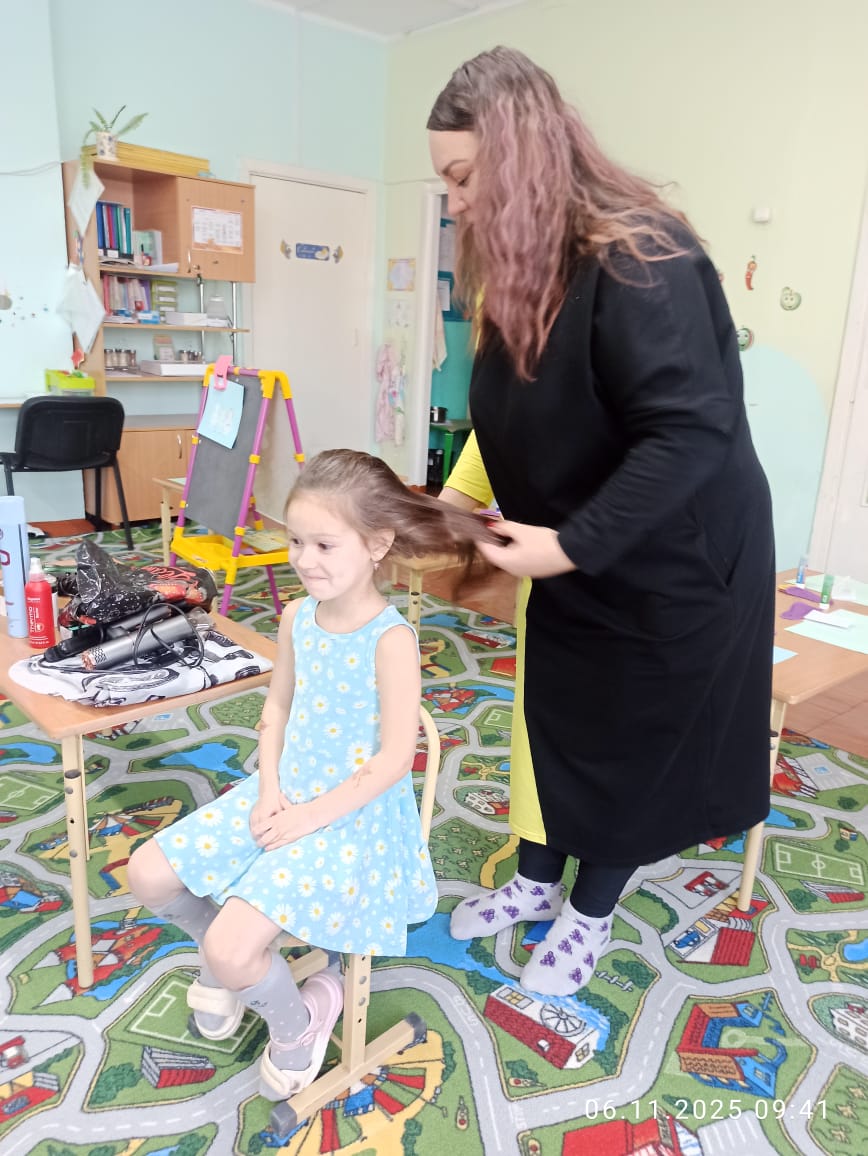 Сегодня в подготовительной группе #8 состоялось необычное занятие. Одна из наших мамочек устроила в группе настоящий салон красоты! Она провела мастер класс для ребят по уходу за волосами и кожей головы, учила ребят делать причёски и многое другое. В общем, мама познакомила наших воспитанников с профессией парикмахера. Ребята увидели и узнали много интересного об этой профессии. А ещё, что не мало важно, дети узнали, что любая профессия приносит доход. Эта встреча помогла ребятам понять то, что на работу взрослые ходят, чтобы зарабатывать деньги, которые необходимы для жизни каждого человека